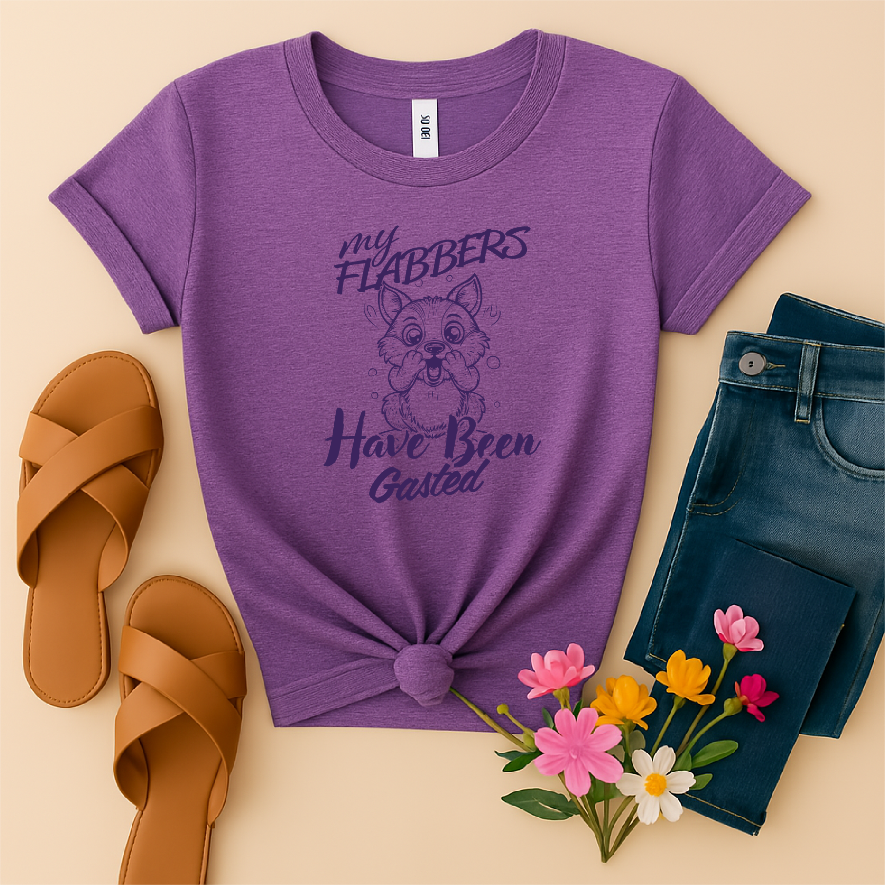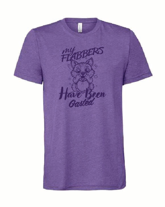 This witty Flabbergasted tee is made from a soft and comfortable 4.3-ounce blend of 60% combed ring-spun cotton and 40% polyester, featuring 32 singles for extra smoothness. It includes a 1x1 rib knit collar, reinforced shoulder-to-shoulder taping for durability, a tear-away label for added convenience, and side seams that enhance the flattering fit. Perfect for everyday wear with a touch of humor.